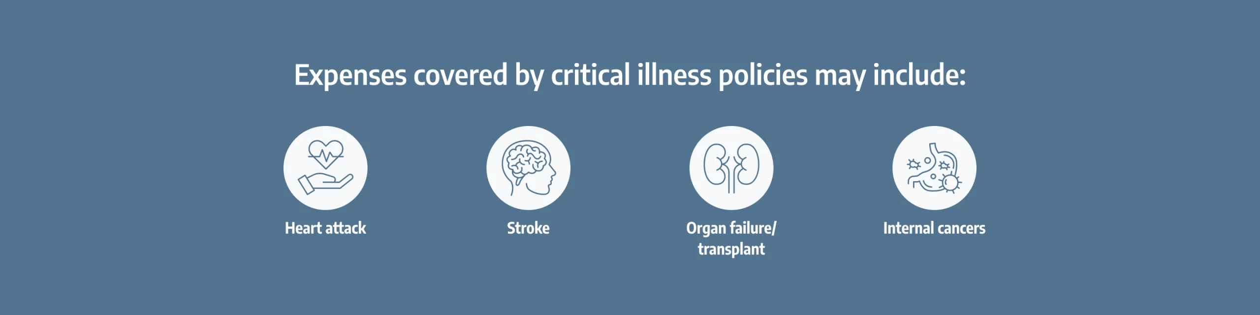Most critical illness policies cover conditions such as heart attack, stroke, organ failure/transplant, and internal cancers (some plans have a partial benefit available for skin cancer). Some policies also provide coverage for severe burns, paralysis, coma, coronary bypass surgery, end-stage renal disease (kidney failure), or significant neurodegenerative conditions such as MS, ALS, or Parkinson’s disease.
