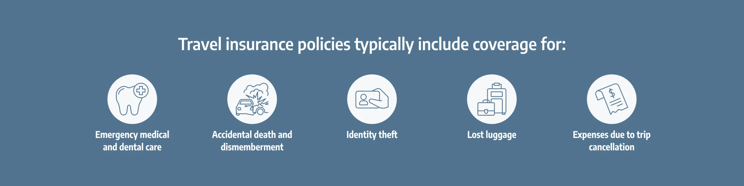 Travel policies can – but don’t always – include a wide range of benefits, including coverage for comprehensive emergency medical and dental care, medical transportation/evacuation, accidental death and dismemberment, repatriation of remains, identity theft, lost luggage, personal liability, and reimbursement of some or all non-refundable expenses due to trip cancellation. Some policies will even cover the cost of extended accommodations if you’re unable to return home on schedule because of a covered illness.